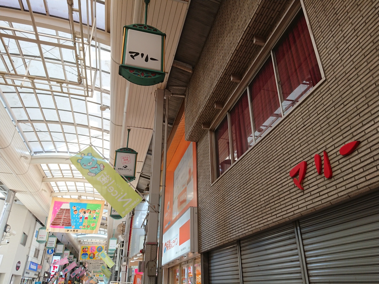 純喫茶あり、マクドナルドあり、大きな文房具屋もあり、天然温泉まであるという、なかなか使える商店街です。