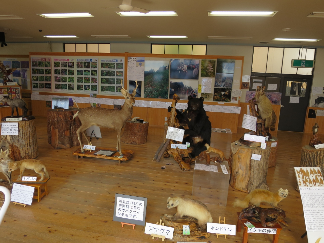 建物内には鹿や熊といった様々な動物の剥製があり、迫力があります。