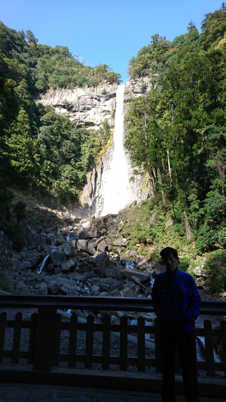 階段を降りきるとすぐ大きな那智の滝を見ることができます。マイナスイオン一杯でとても心地よいです。