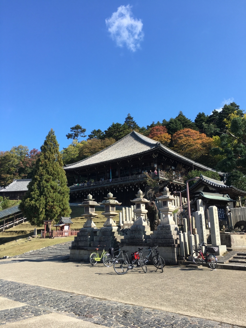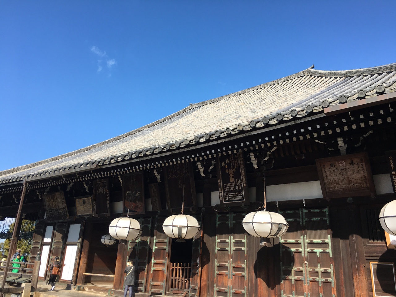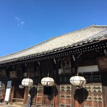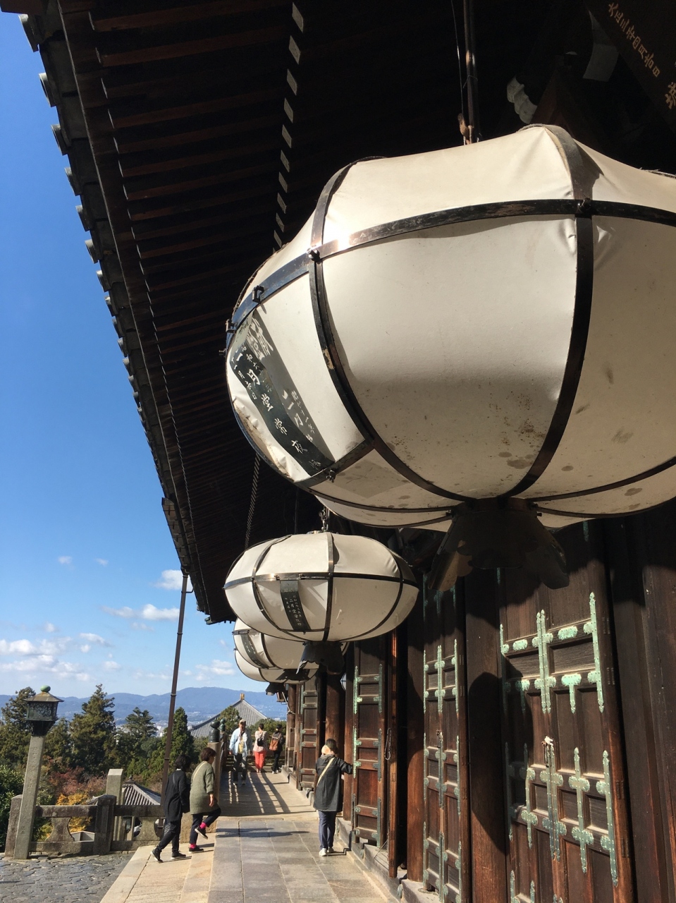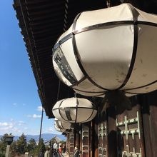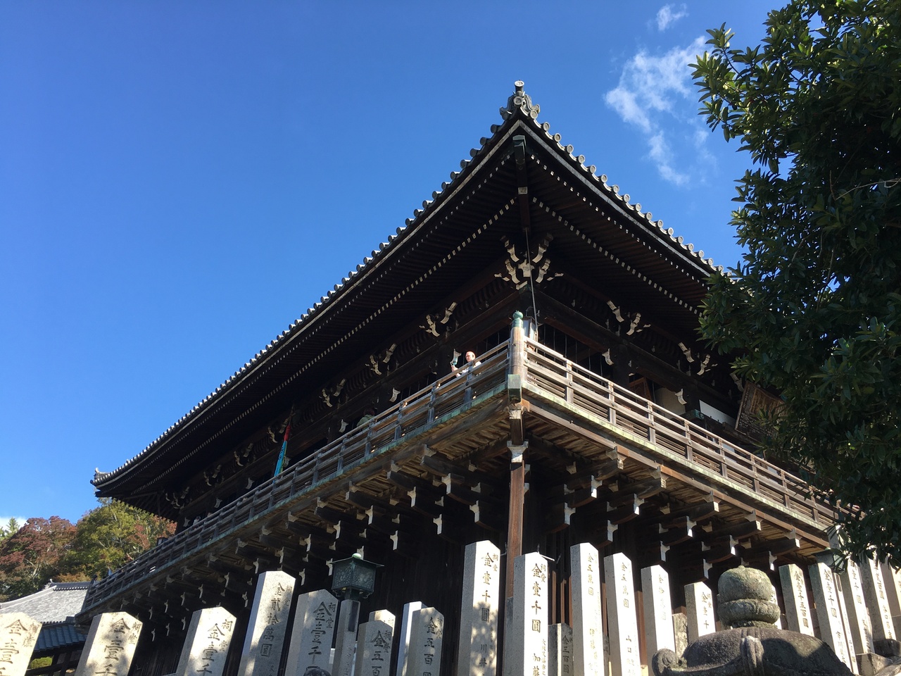 京都の清水寺を少し小さくしたような建物で、階段を登ったら展望スペースがあり、真下には四月堂があり、少し遠くには大仏殿が見え、遠くには山々と景観が最高でした。展望スペースので後ろパン本殿になっていてお祈りできます。東大寺エリアで一番の見所でした。