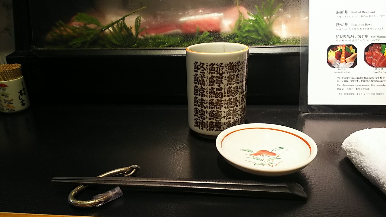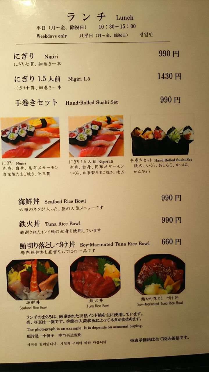 1階のカウンターに座りましたが、2階もあるようです!カウンター内で二人の職人さんと奥の方、接客の女性と4人?で切り盛りするお寿司屋さんで外国の方が入るお店ではないような風情です!