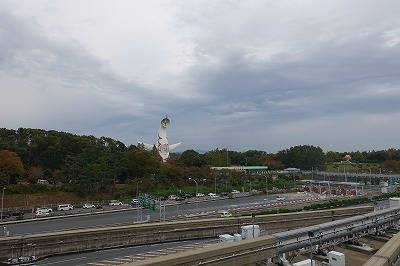 最寄りの万博公園駅から、太陽の塔は見えますが