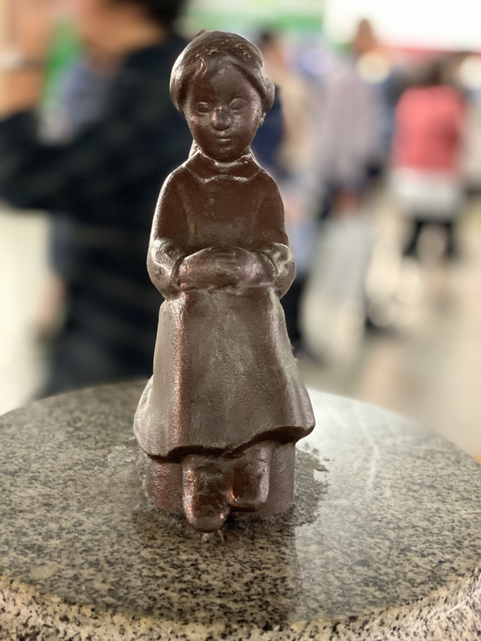 JR横浜駅には待ち合わせの場所がいくつかありますが、この赤い靴はいてた女の子像も待ち合わせの場所で有名です。平日でも人の数はかなりのものです。思いの外小さい銅像ですが、かわいらしいので、思わず写真に収めました。