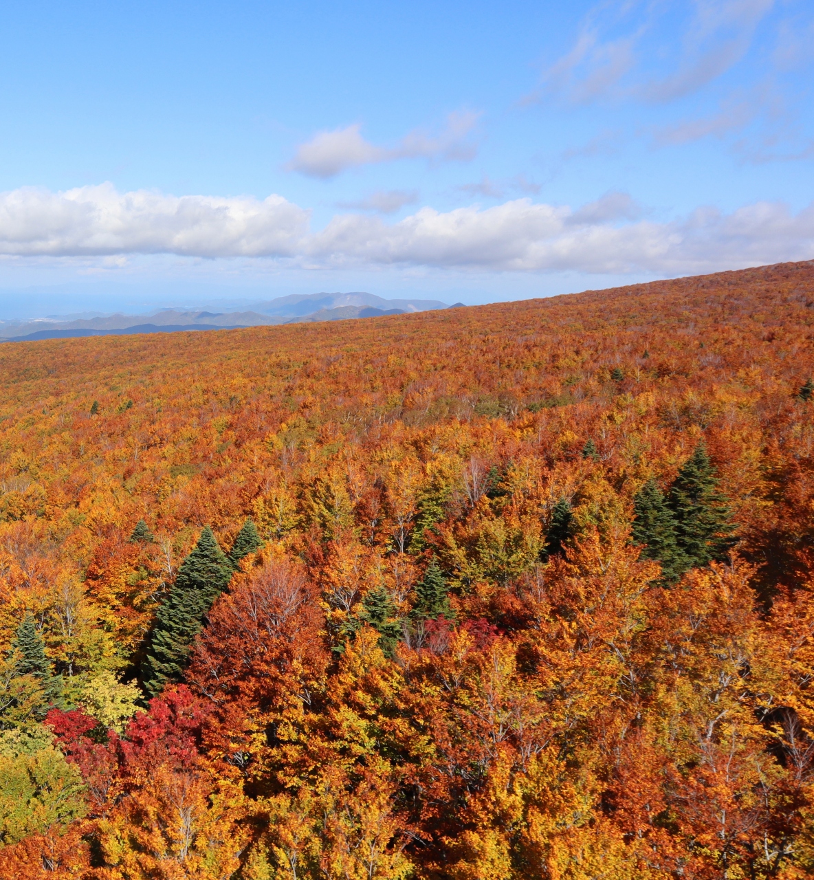 紅葉のじゅうたんの上を空中散歩、大きな窓からは360°の大パノラマが楽しめます。
