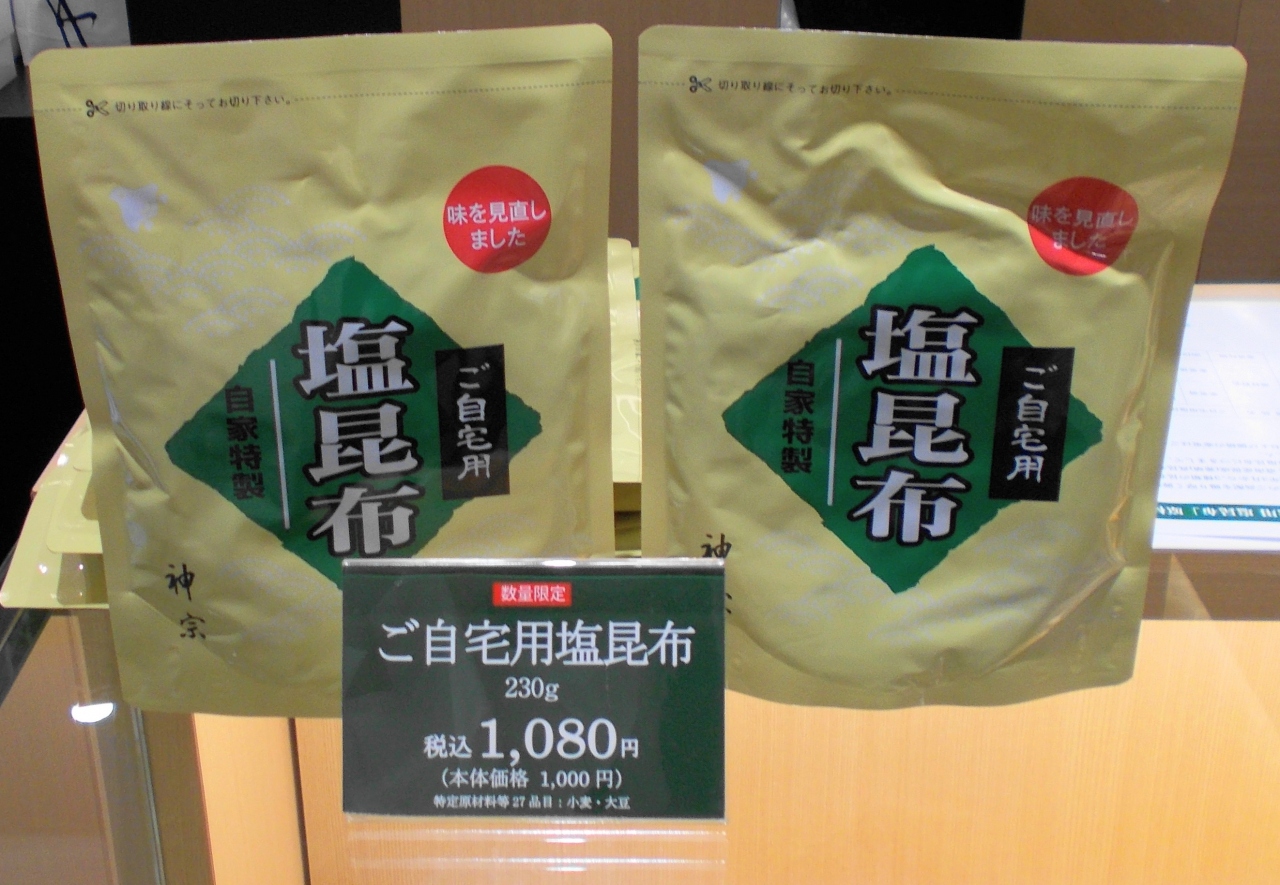 従来の「徳用塩昆布」は終売、新たに「ご自宅用 塩昆布」(230g・1080円)として販売しています。