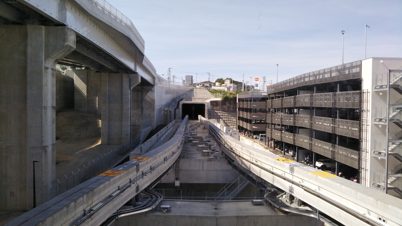 新しい終点てだこ浦西まで乗ってみると、ゆいレールでただ一つのトンネルがあった。