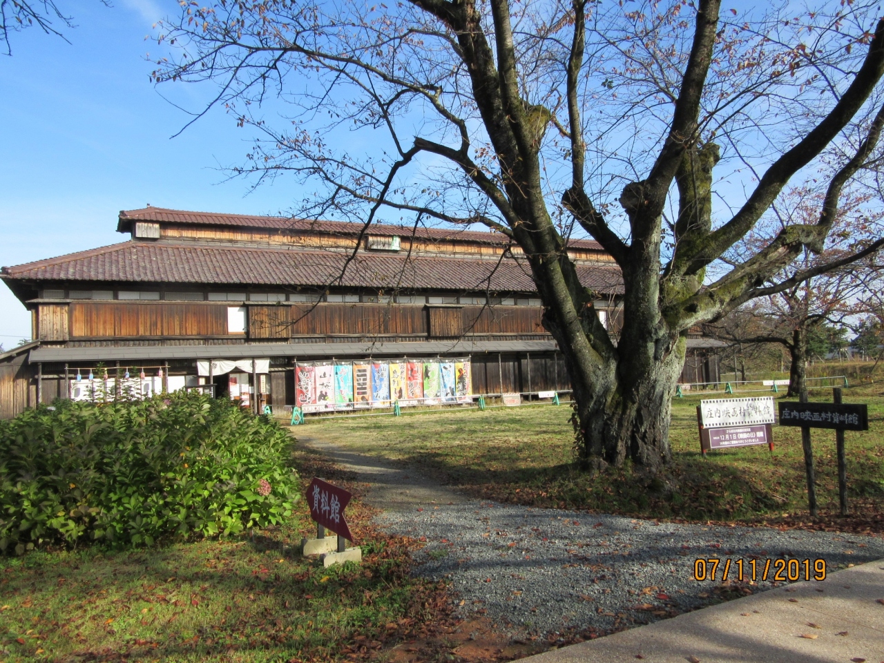 今復活ブームの【おしん】のセットがあると聞き鶴岡からバスを利用し、最寄りのバス停から約40分のどかな畑の中の道を訪問しました。【映画おしんのセット】【おくり人のパネルと体験棺桶】【十三人の刺客の実際の衣装】【撮影機材】等々、映画ファンには楽しい施設です。が残念ですが、本年2019年12月1日(日曜日)の映画の日をもって閉館だそうです。理由は松ヶ岡開墾地の自然保護とのことですが、多数の素晴らしい資料が展示されていたので複雑な気持ちです。残り2週間余りなので、映画ファンは必見です。