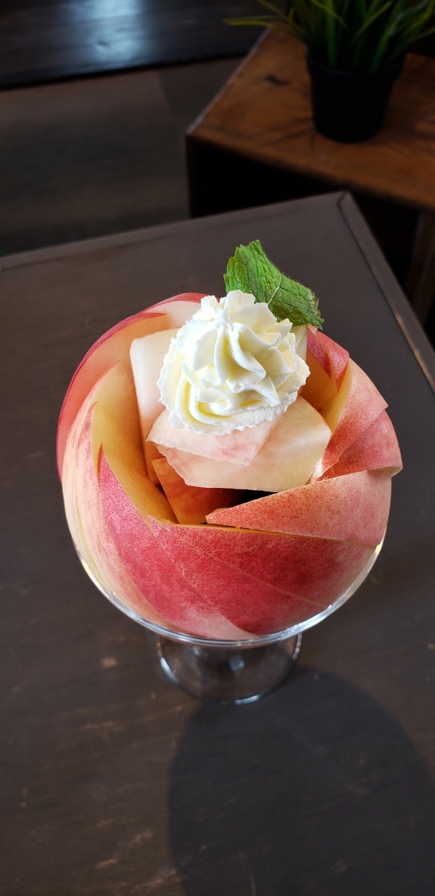 桃のパフェが有名なようで、美味しいのですがほぼ桃といった感じです。