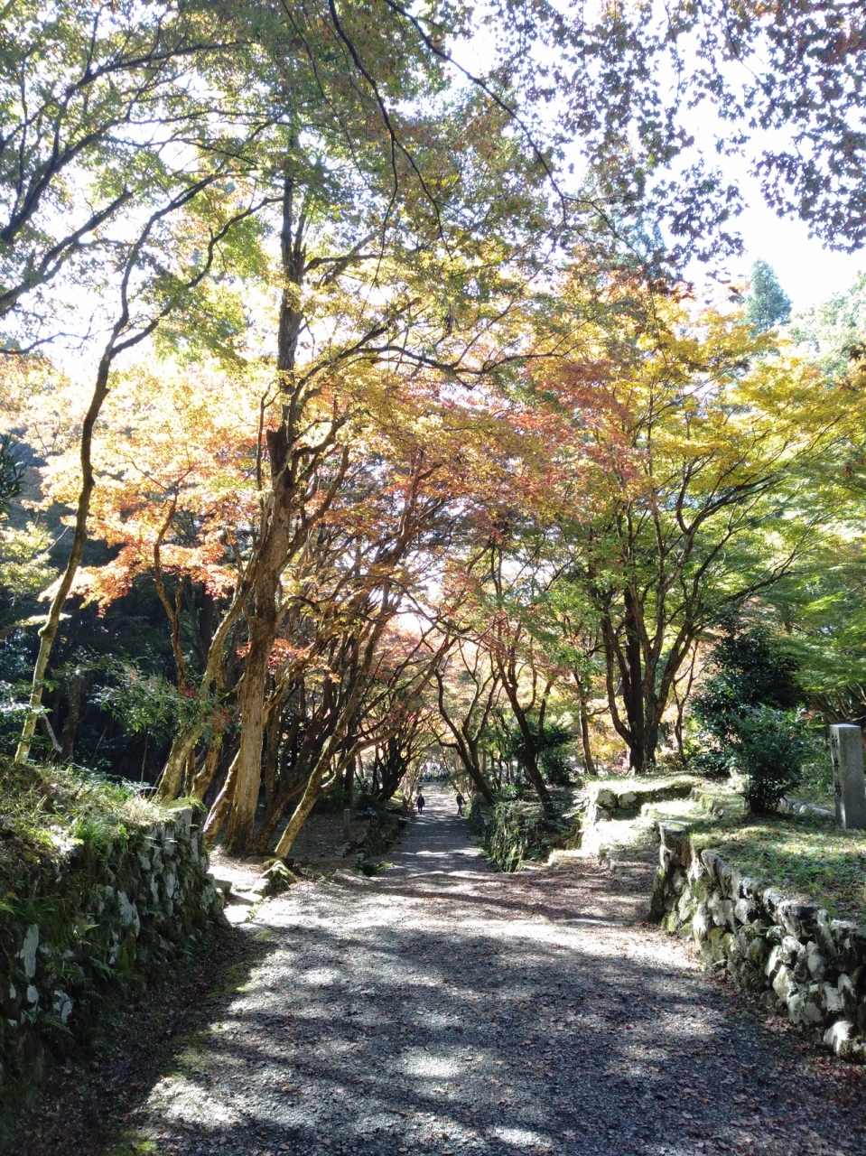 紅葉散策協力金200円。11月の初旬は流石に早すぎてほとんど色づいていませんが、何本かは紅く色づいているものもありました。人の混雑もまだそれほど無くて散策はゆっくり出来ます。駐車場から鶏足寺までは歩いて20分登りや階段が多いので割と大変です。沿道には地元の農産物が売られています。