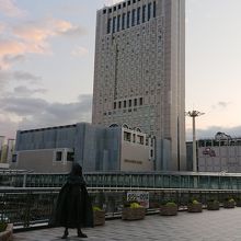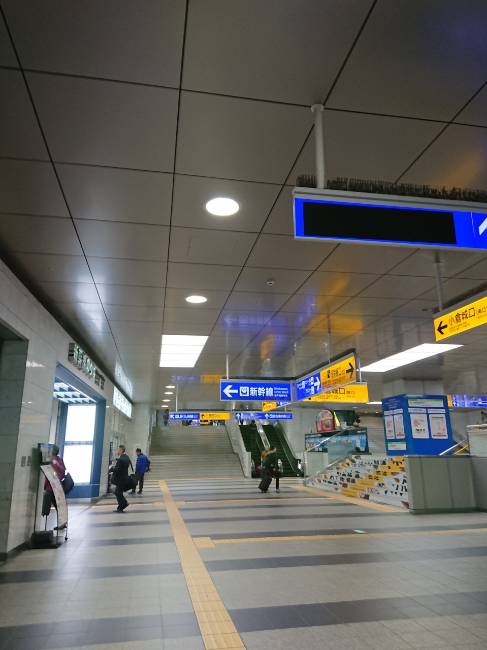 北九州空港からエアポートバスで到着した新幹線口の小倉駅。駅構内へはバス停から左手前の横断歩道を渡って階段やエスカレーターで2階へ…駅を正面に見て右手に行くと新幹線口その奥に在来線の改札口があります。その途中に駅の方を見つめていたのは…