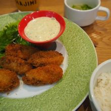 広島県産の牡蠣かどうかは分からないが、小粒ながらもジューシーで、潮の味たっぷり。衣はサクサクに揚がっていた。