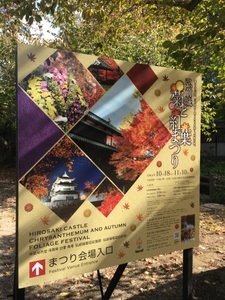 弘前城公園では、桜祭り以外にも年に何度もイベントがあり、こちらは秋の菊まつりです。人形の衣装を菊で飾ったイベントで、紅葉も一緒に楽しめる華やかなお祭りです。弘前城は桜だけでなく、紅葉の名所でもあります。桜も紅葉しますので、とてもダイナミックです。