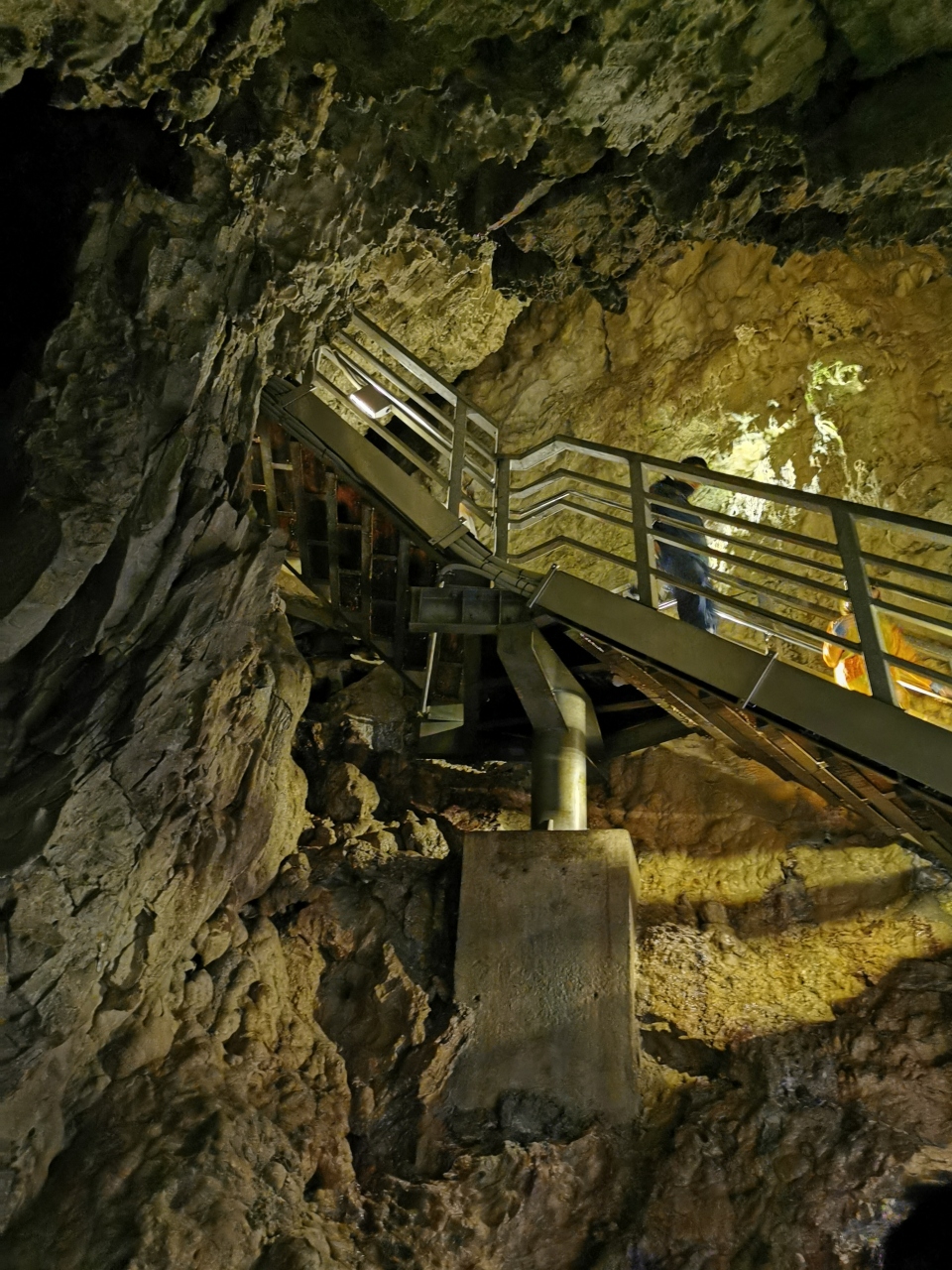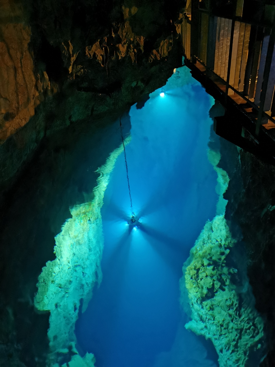 夏の東北旅行。自動車での一人旅。宮城県松島を早朝4時に出発、牡鹿半島、女川、南三陸、釜石、宮古、たろうを45号線で北上。15時30分過ぎに「龍泉洞」に到着。夕方近いですが観光客でいっぱいです。無料の駐車場も多数。問題なく泊められます。入り口で入場料をお支払い。洞内はひんやり。奥に奥に進むと地底湖があります。とても綺麗なブルーの照明。一番奥からはコースが分かれてまして、チャレンジコースはキツい階段が続きます。とても素晴らしい鍾乳洞でした。よかった。