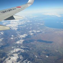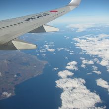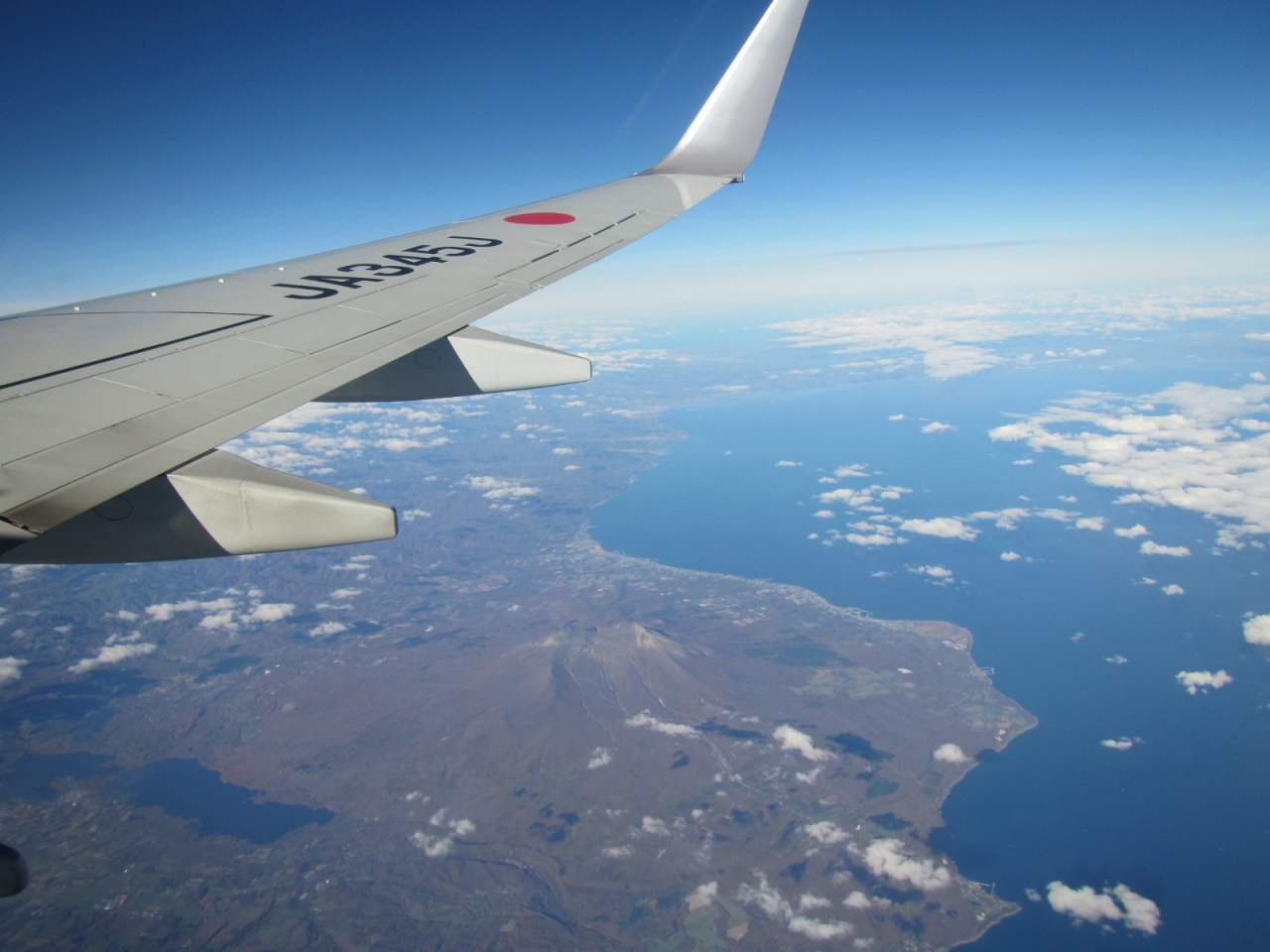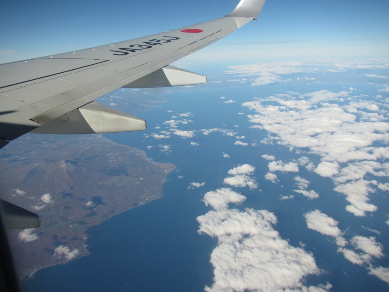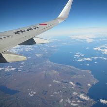 新千歳空港を飛び立ち、苫小牧から海上に出てからは、海岸線沿いに進み、室蘭辺りで噴火湾を飛び越え、駒ケ岳のある鹿部辺りで、再び陸地にさし掛かりました。
