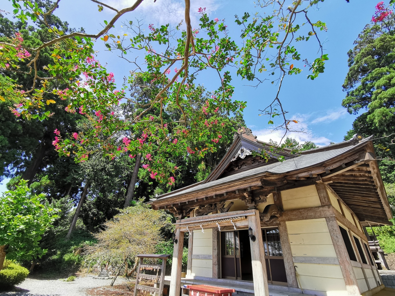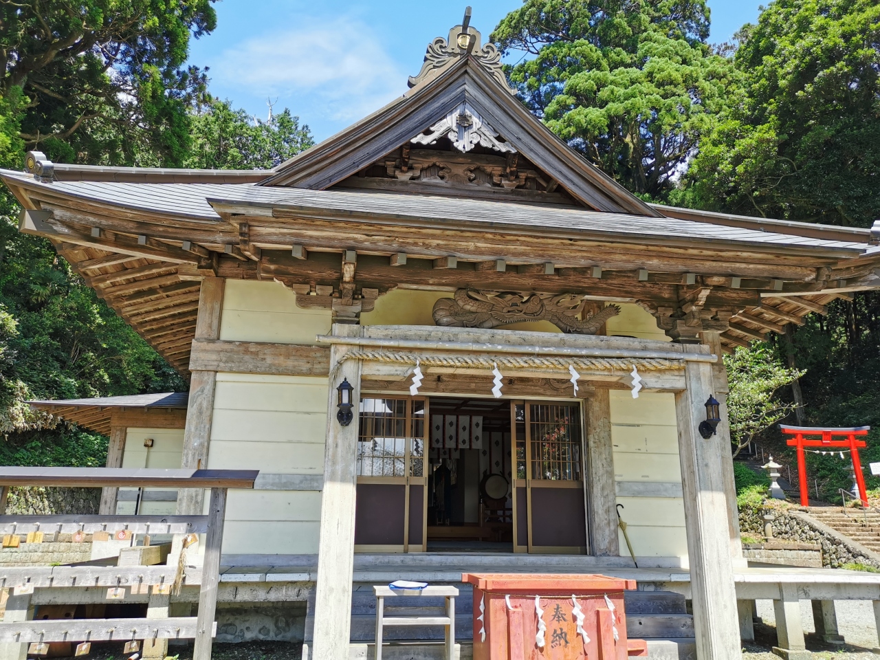 道路から階段を登ると手水場、さらに階段を登ると本殿があります。境内には大銀杏の古木があります。