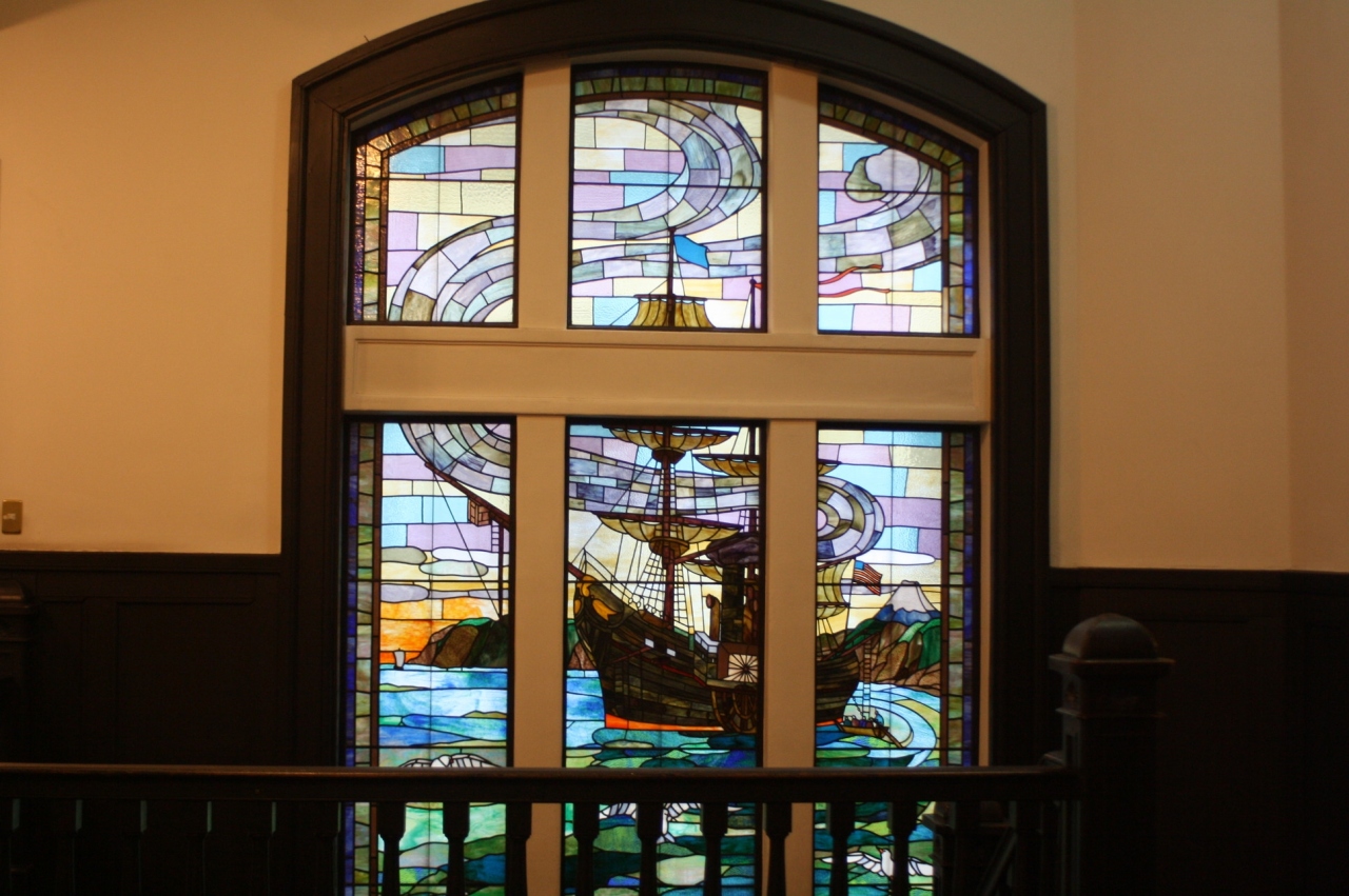 ペリー来航の黒船を描いているステンドグラスがとても綺麗でした。