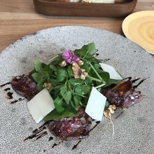 時々ランチで利用しています。前菜、メインのパスタ系、デザート、ドリンク、それぞれ5種類ぐらいから選ぶプリファクスタイプのパスタランチ。素材の産地にも凝っています。今回私はスモークしたマグレ鴨胸肉と無花果、胡桃のサラダ。メインはマッシュとパルミジャーノのリゾット、トリュフの香り。デザートは無農薬豊橋紅茶のパンナコッタとクリームブリュれのジェラード選びました。どれも美味しかったです。