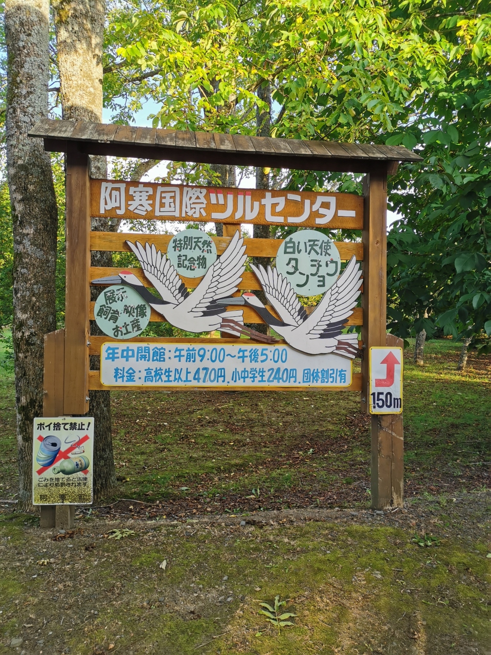 秋の北海道一人旅2日目。釧路市を出発して細岡展望台、900草原、裏摩周展望台、神の子池、摩周湖、硫黄山、屈斜路湖、阿寒湖まで周りまして、宿泊先のある釧路市に戻ります。国道240号線を釧路方向に走った「道の駅 阿寒丹頂の里」の道路向かいに「阿寒国際ツルセンター」があります。無料駐車場あり。夕方の閉館間近でしたので私1人だけでした。屋外の飼育場に数羽の丹頂がいます。季節が秋だとまだ集まってこないとの事です。来るなら冬が一番ですね。