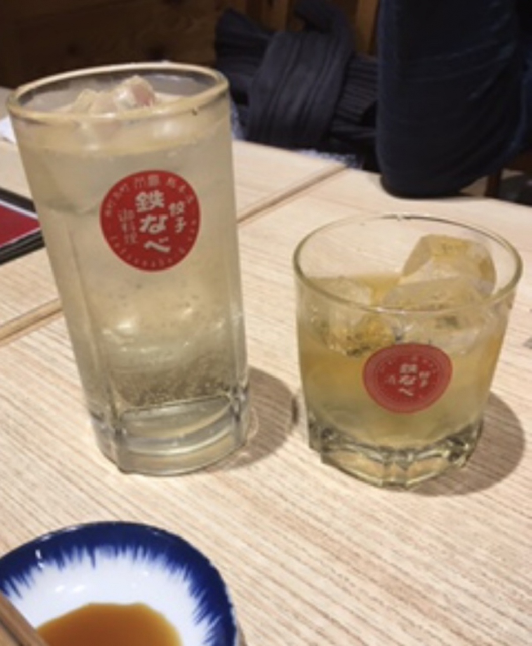 アルコールと一緒に名物の鉄鍋餃子2人分を頼みました。