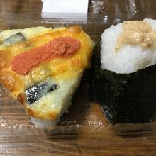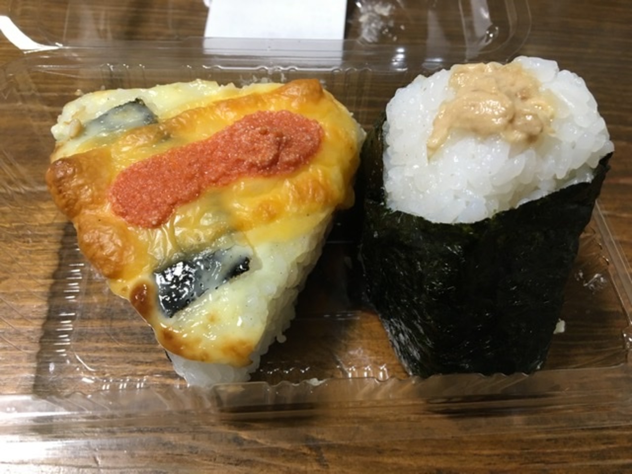 新幹線に乗る前におにぎりを買うことにしました。カウンターには美味しそうなおにぎりがいっぱいあって、みんな楽しそうに選んでいました。のり明太チーズはめずらしくて選びましたが美味しかったです。手が汚れるので、お箸は必要です。