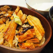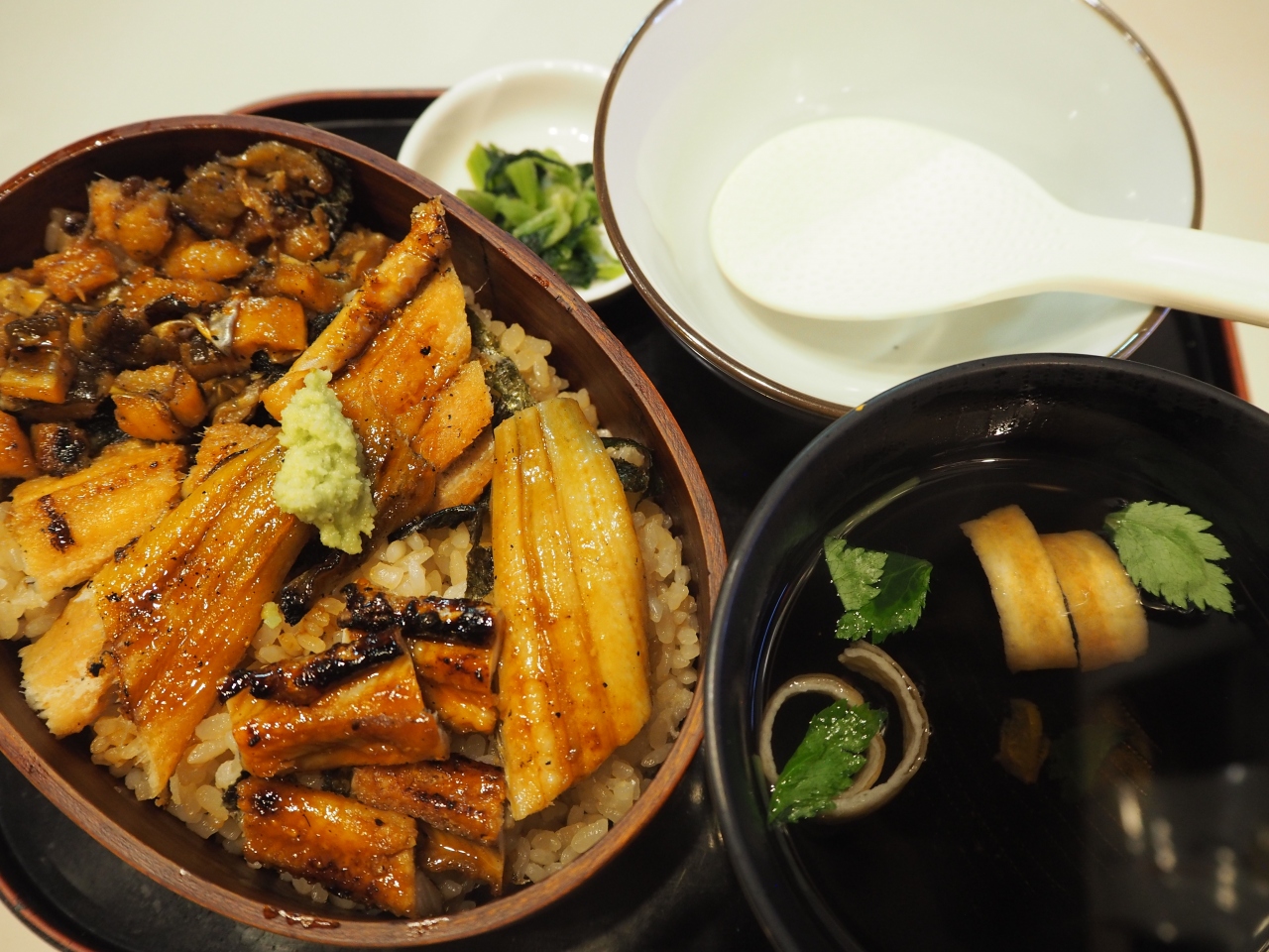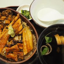 穴子の蒸し煮、地焼、佃煮の3種類を味わうことができ、お吸い物と野沢菜がついて、2170円(税込)です。