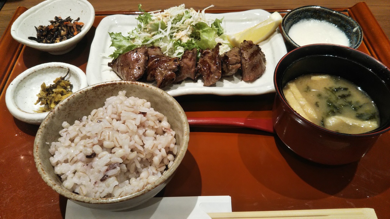 土曜日のランチで初めて行きました。カウンター席にしましたが、ドリンクがサービスされました。一番人気の牛タンと麦とろの定食にしましたが、とても美味しくて、安かったので大変満足しました。大麦は腹持ちもよかったです。