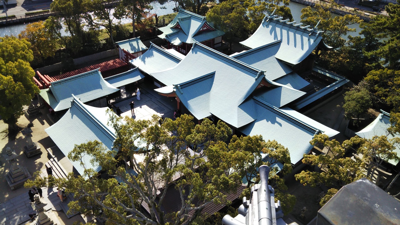 かつて天守があったところに作られた神社でした。周辺の複数の神社を合祀して今治城の異名だった吹揚城にちなんで名付けられました。七五三で参拝する家族連れでにぎわっていました。少し離れたところにある社務所で御朱印をいただくことができました