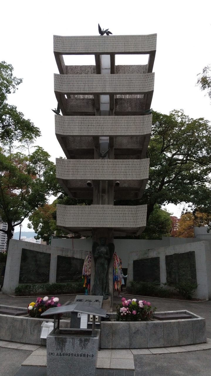 平和公園の北側,原爆ドームのすぐ近くにある,戦争の犠牲になった若い動員学徒(原爆だけではなく全国の学徒)を慰霊する塔です。平和資料館とともに訪れることで、より深く考え、戦争の悲惨さを知ることができました。
