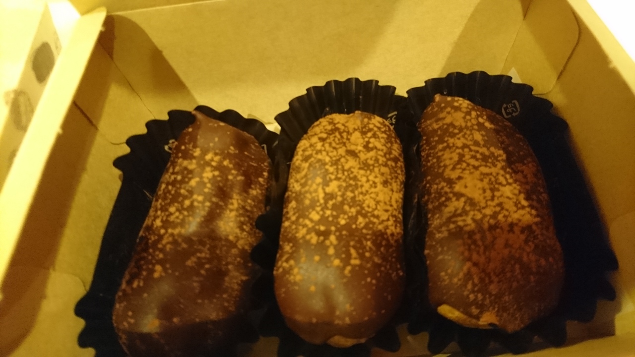 シュークリームは一口サイズでかわいくてとてもおいしかったです。エクレアもチョコがぱりぱりしていました。