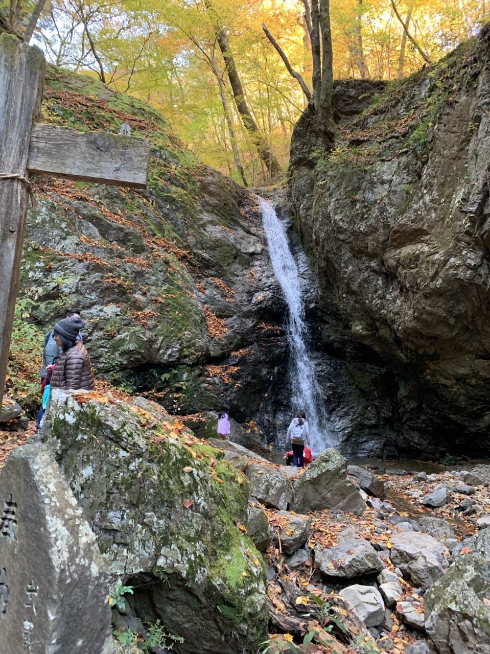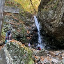 ロックガーデンハイキングコースの途中にあります。落差10メートル程度の縦長な滝ですが、武蔵御嶽神社のみそぎの行事に使われているそうです。また滝行も宿坊に泊まって申し込むと出来るそうです。その幽玄な雰囲気には心が洗われます。