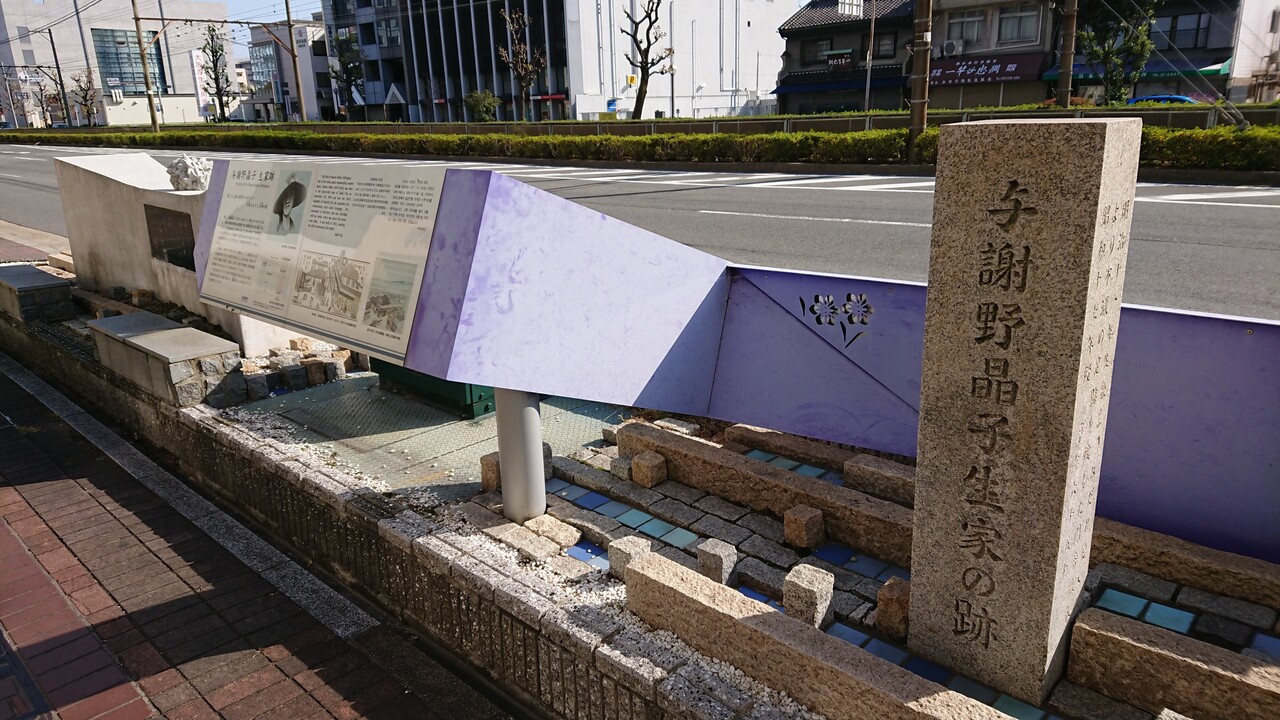 阪堺宿院駅からすぐの場所で近くには千利休屋敷跡もあります、「君死にたまふことなかれ」などの作家で孫には政治家も輩出した方です、生家跡には当時の屋敷の配置図もあり大きな屋敷だったんだなと感じさせられました、周辺には歴史的な場所も多いので散歩がてらに立ち寄るのも良いと思います。