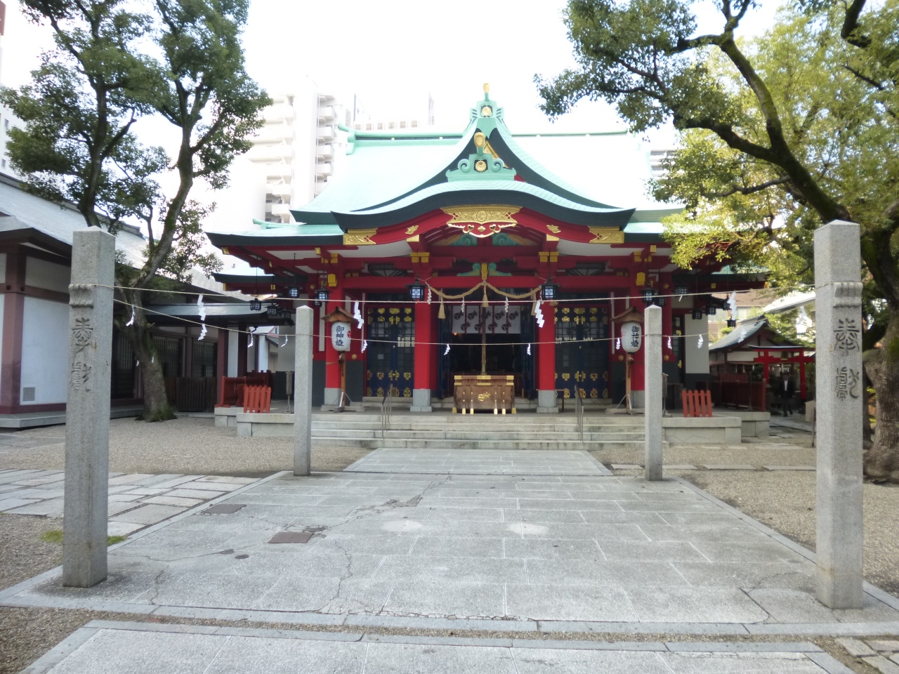 本町駅周辺のホテルに宿泊し、翌日、京阪淀屋橋駅まで向かう途中に、御霊神社に参拝しました。朝の通勤時間帯ということで参拝客の姿はほとんどなく、落ち着いた雰囲気でした。それほど境内は広くないですが、見どころは多く、また改修工事が行われたのか屋根の緑の鮮やかさが印象的でした。