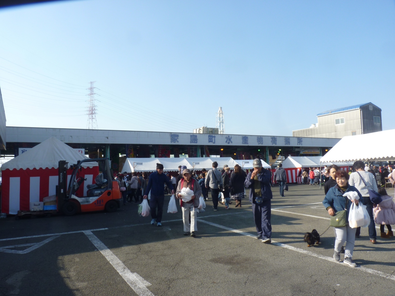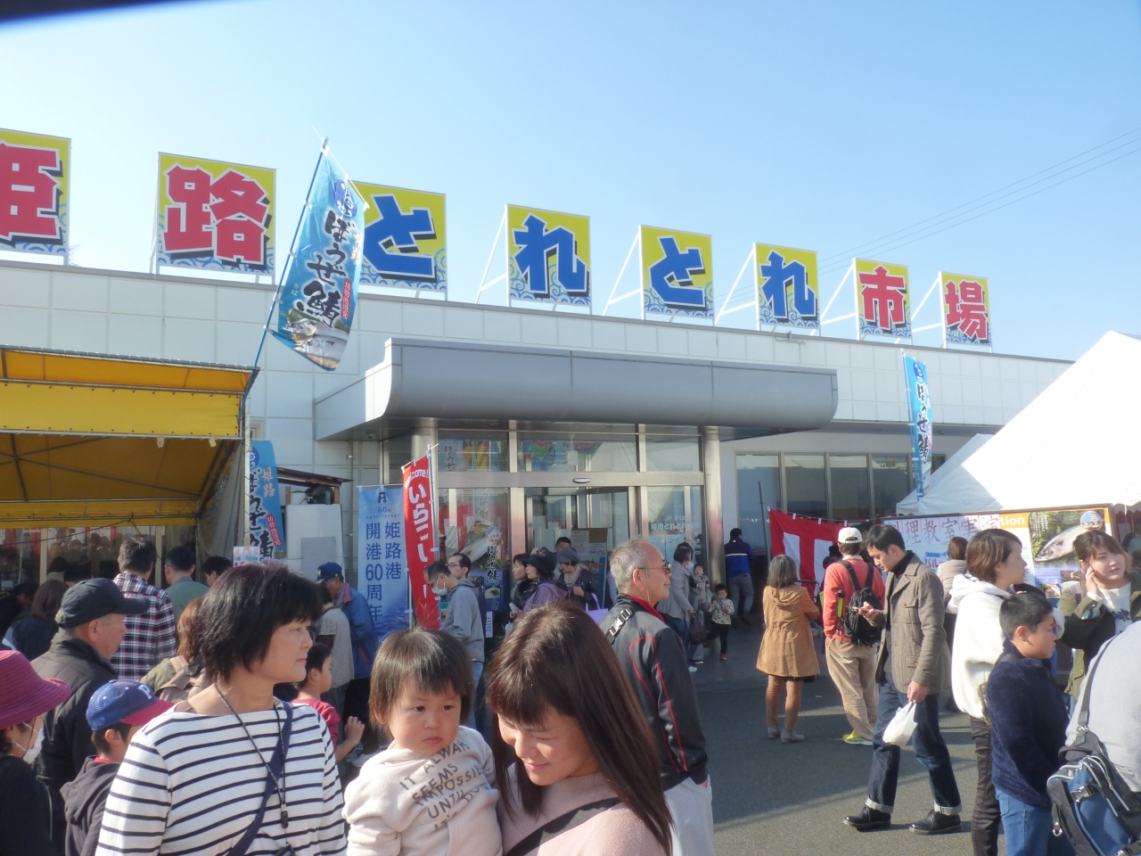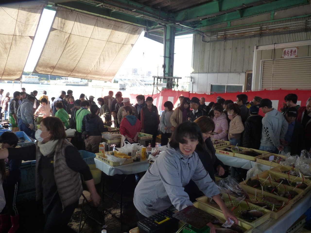年一度の妻鹿漁港で取れ取れのさば祭りと大売出しが賑やかに開催され、多くの魚フアンが新鮮な魚を求めて遠くから買出しに来ている。9時からのオープンでさばのさばきや、マグロの解体ショーが始まり格安の魚を買い込んでいる。近くにはカキの味噌汁の無料振る舞いも有り、多くの人の行列が出来ていた。