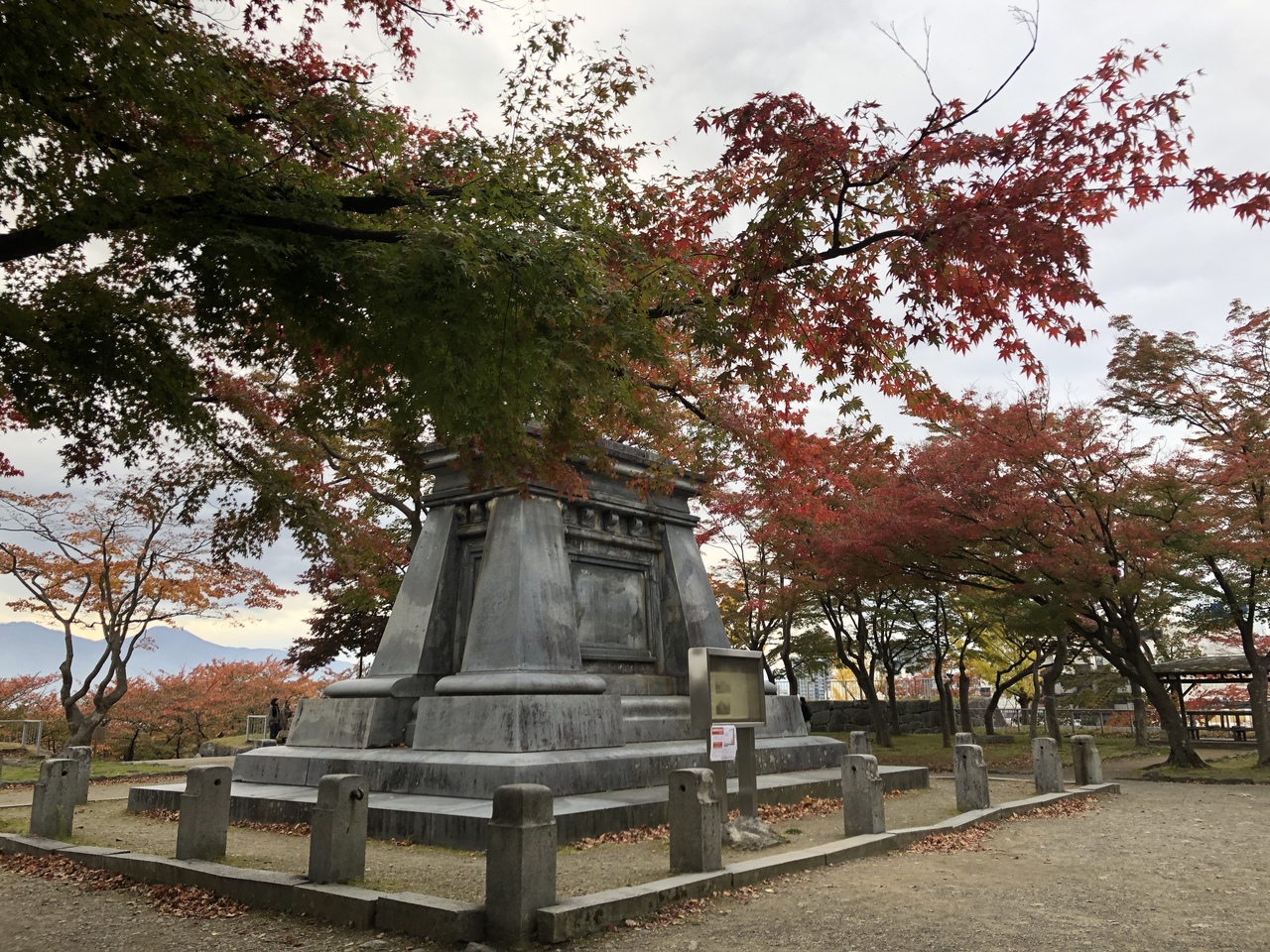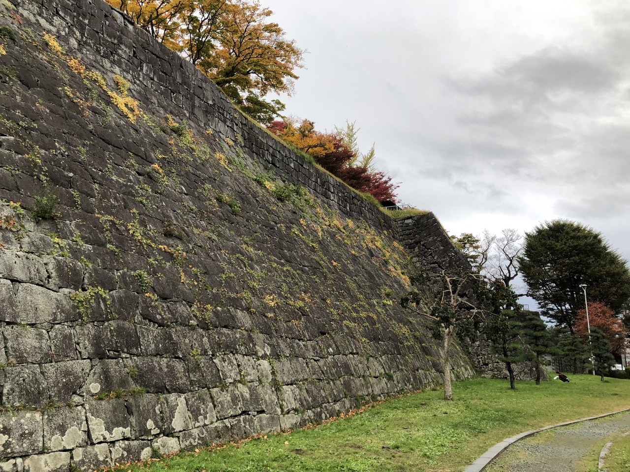 盛岡市内を一望でき、散歩するにはちょうど良いお城です。城内には天守閣や櫓などは残っていませんが、多少ゆがみやふくらみのみられる石垣はその古さが感じられました。紅葉の時期に訪れ、紅葉などが綺麗に色づいていました。