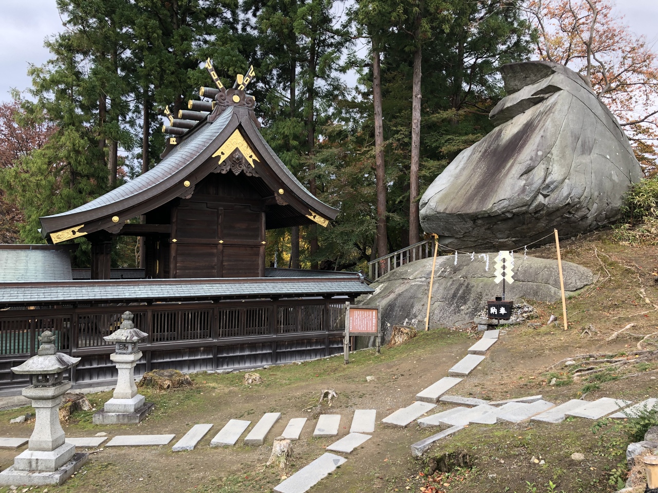 盛岡城跡を訪れた際に立ち寄りました。神社の奥の方に大きな岩が残っており、その大きさには圧倒されました。なぜ平坦な盛岡市内にこのような大きな岩がこの付近にのみいくつか残っているのか、地学的にどうなんだろうかと考えました。個人的には興味深い場所でした。