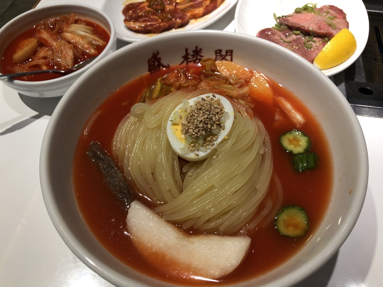 盛岡駅前のビルに入店しており、駅からは地下道をくぐって約3分ほどでした。11時開店ですでに並んでおり、11時半には店の前の階段を埋め尽くするほどの人気ぶりでした。この店で有名な盛岡冷麺はとても歯応えのある麺で美味しかったです。牛タンは分厚くこれまたおいしかったです。