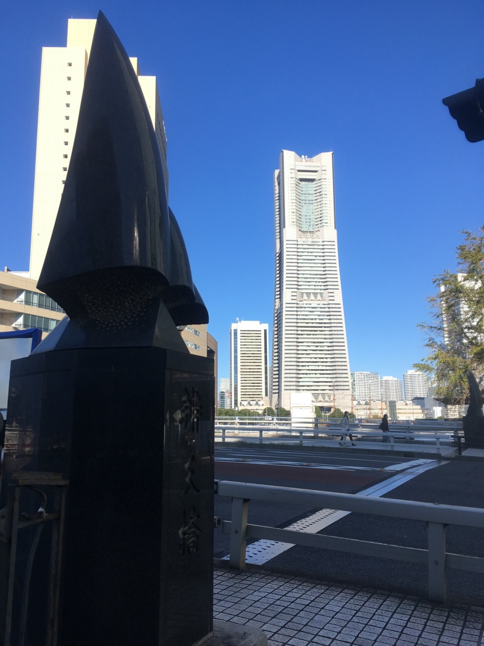 桜木町駅から馬車道駅へ行く途中に大岡川に架かる橋です。比較的新しい橋で欄干に船の帆らしき黒い彫刻があります。イカのようでもありますが。ここからのみなとみらいの夜景がとてもきれいです。かつて横浜村の鎮守さまで洲干弁天社が橋の東詰にあったことから名前がついたらしいです。