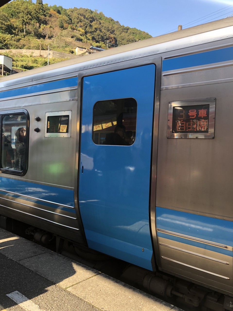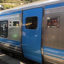 大歩危駅から利用しました。3両編成で、自由席は1両だけでした。アンパンマンの作者が高知県出身なので、アンパンマン塗装の車両があるのですが、普通の車両でがっかりでした。指定席には空席があったのですが、自由席は混んでいて、席を探すのが大変でした。