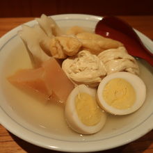 かなりあっさりめの、透き通ったおでんつゆです。セブンイレブンのおでんに慣れてしまったので、もうちょっと味が濃い方が私的には好みでした・・・。