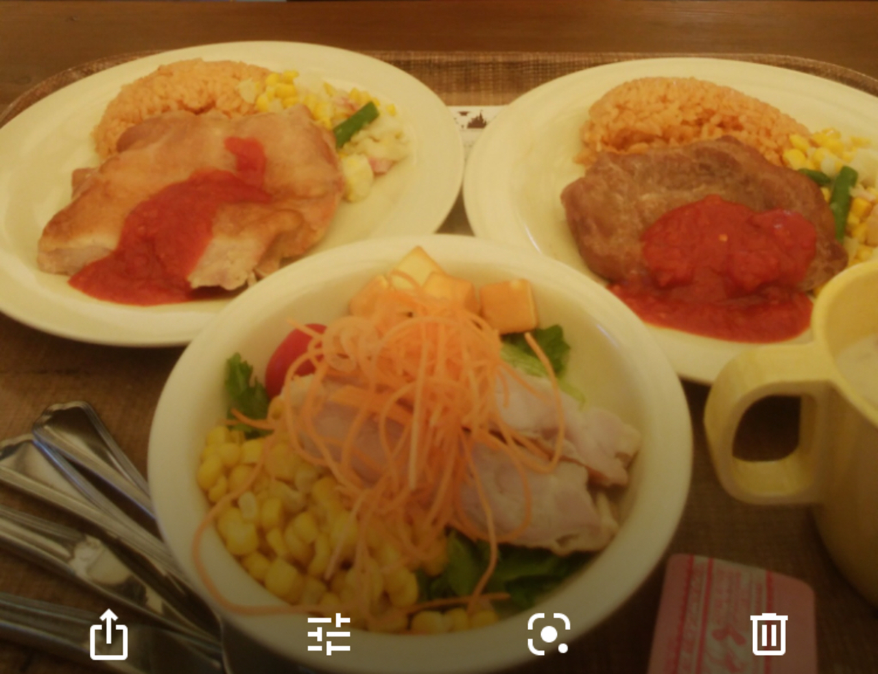 メインディッシュはチキン、ポーク、サーモンのオーブン焼き3種。メキシカンライスとワンプレートです。セットメニューにはソフトドリンク付き。