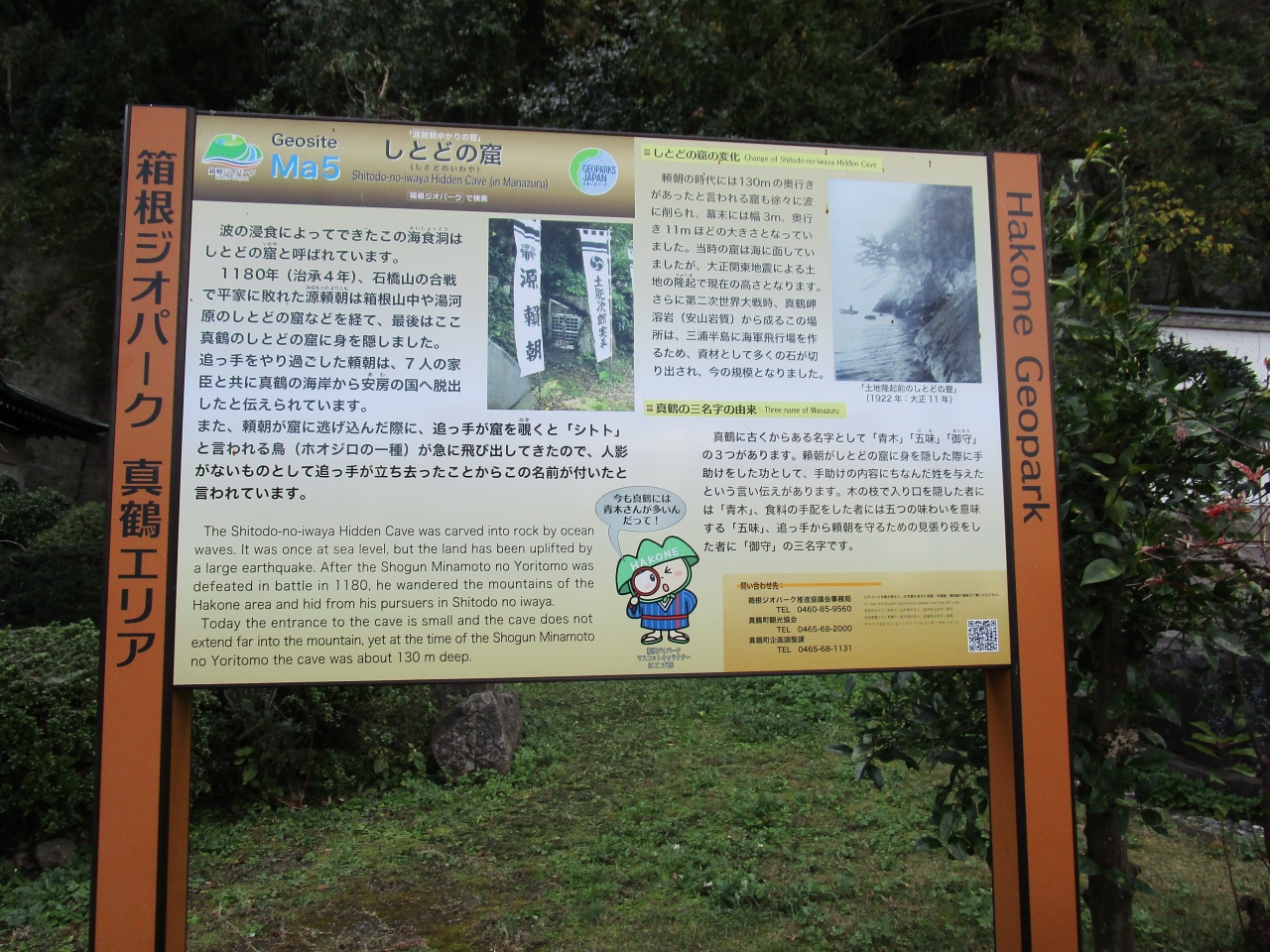 神奈川県真鶴町と、湯河原町の二カ所にある源頼朝が隠れたとされる洞窟の内の、真鶴町真鶴港の近くのしとどの窟は、頼朝の時代には130mの奥行きがあったと言われていましたが、浸食や隆起などの自然現象や石切りの為に現在の規模になったそうです。