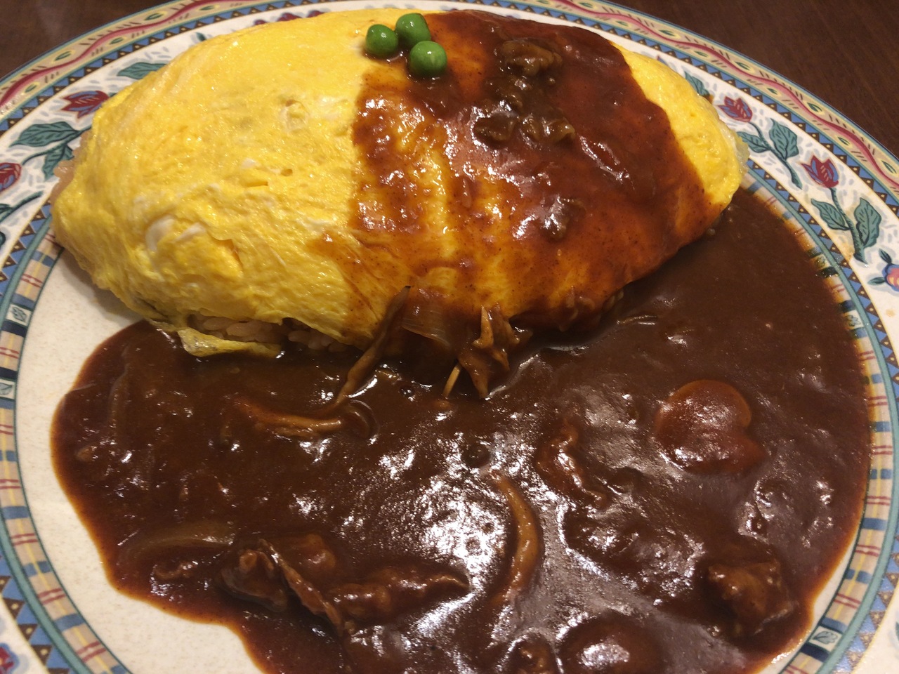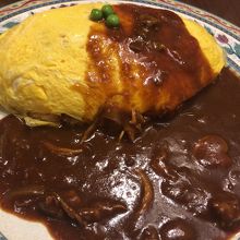 ランチで利用。オムハヤシを注文しました。小さいサラダとスープつきです。チキンライスではなく、アサリが入った炊き込みご飯、硬めの昔風の卵です。