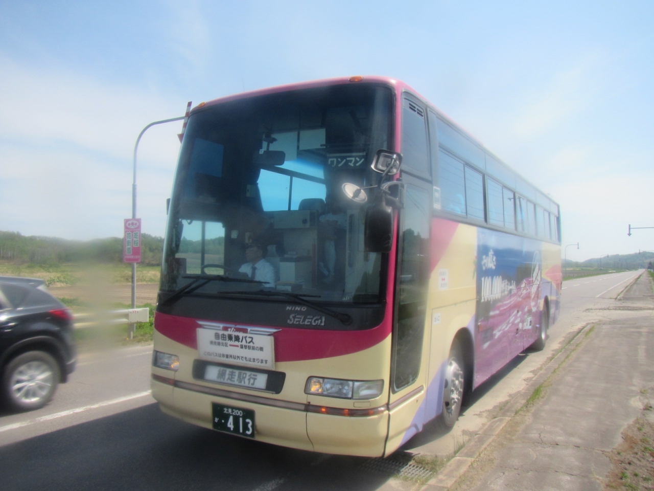今回、東藻琴の芝桜を見るために利用しましたが、網走バスで行けるのは、東藻琴の中心市街地までで、そこからは芝桜の時期のみ運行される予約制の無料チャーターバスが芝桜会場まで運行していました。