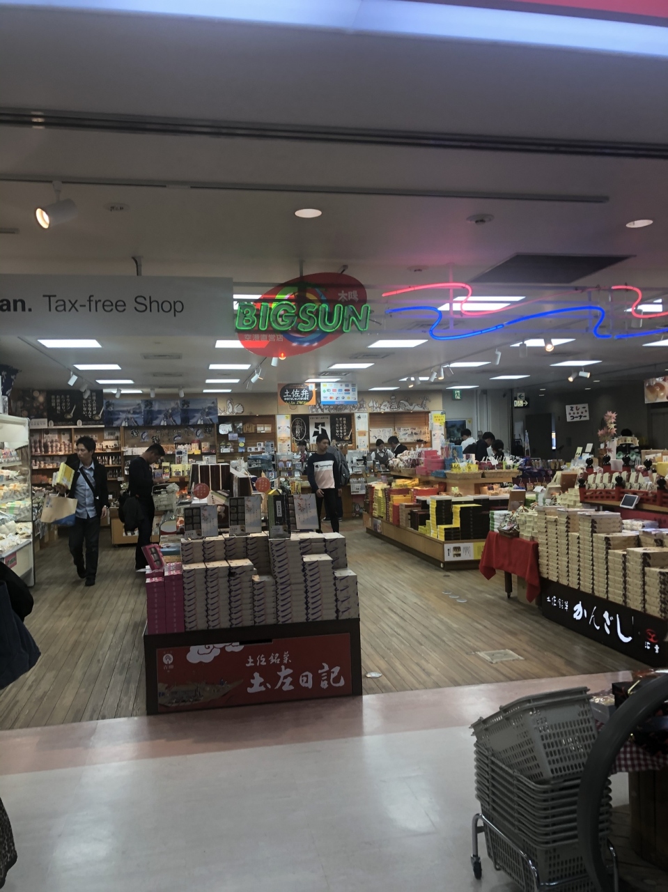 高知空港の保安検査場から向かって右奥にあるギフトショップです。お酒、栗焼酎、お菓子など、高知名産品がそろっています。ここで、四万十川のあおさのりが販売していました。保安検査場を抜けたところにあるANA FESTAでは、300円くらい高く販売していました。