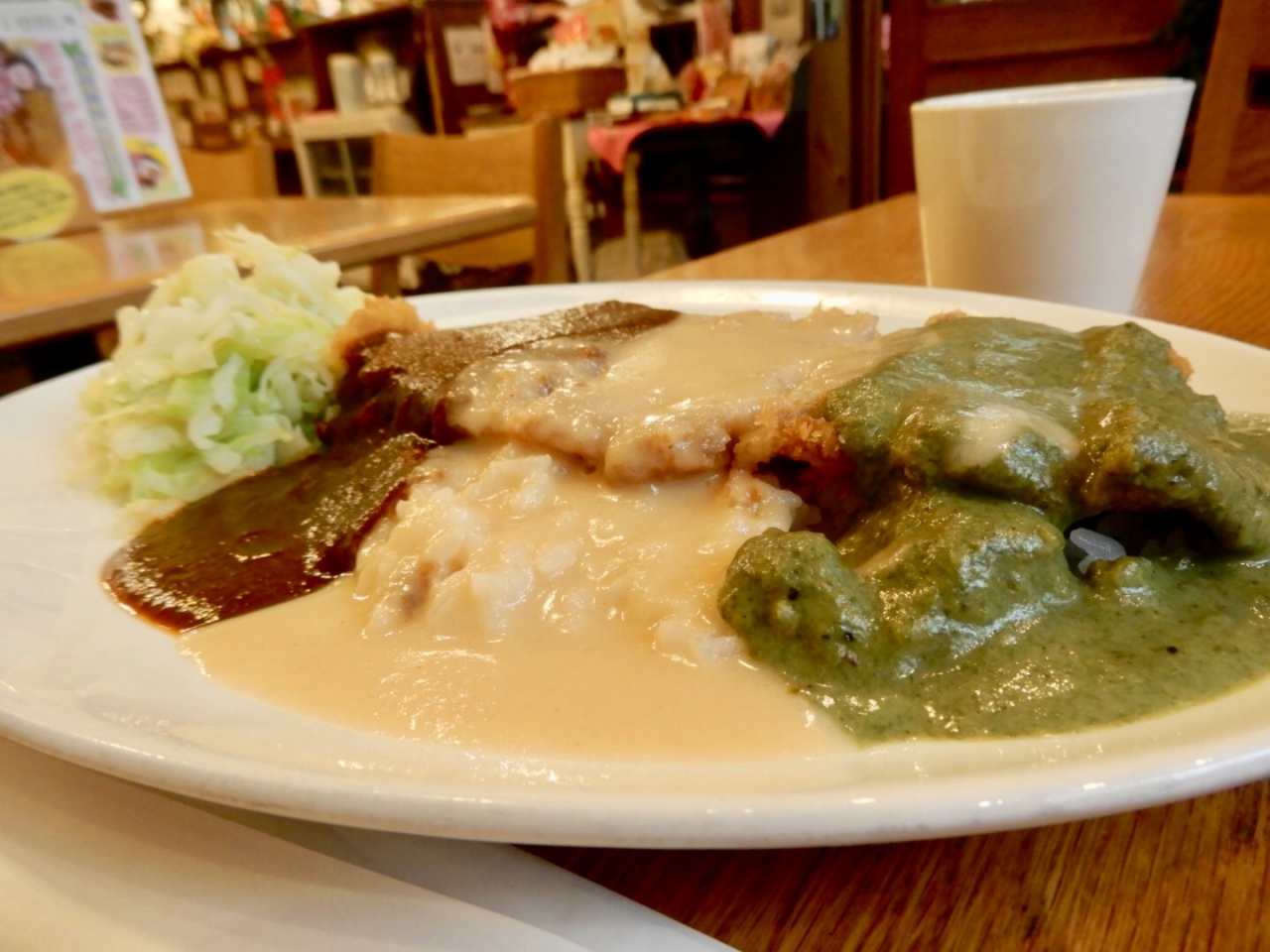 薄く延ばした牛カツにデミグラスソースがかけてあり