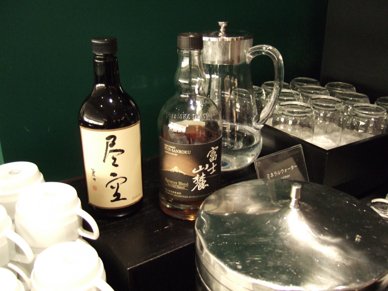 日曜の夕方ですが混んでいて、西日が眩しくブラインドは閉められていてもカウンター席はほぼ満席。中の方に座りましたが、ウイスキーが千歳と同じ富士山麓に変わっていました。