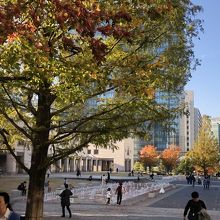 横浜美術館とマークイズ横浜の間の広場は、以前は水盤が設置されていましたが、リニューアルして直に噴水が噴き出るようになりました。