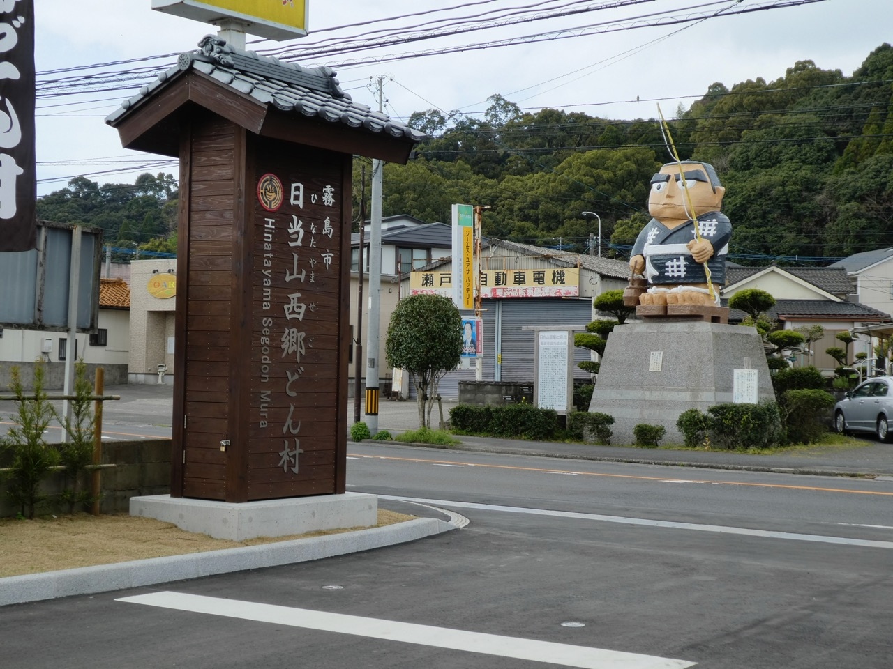 妙見温泉から日当山を通って国分へ、と日当山温泉で巨大な西郷さんが。