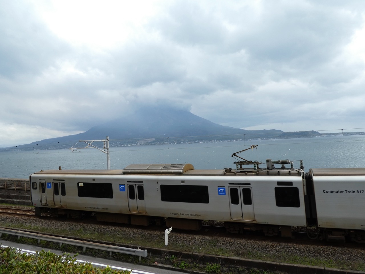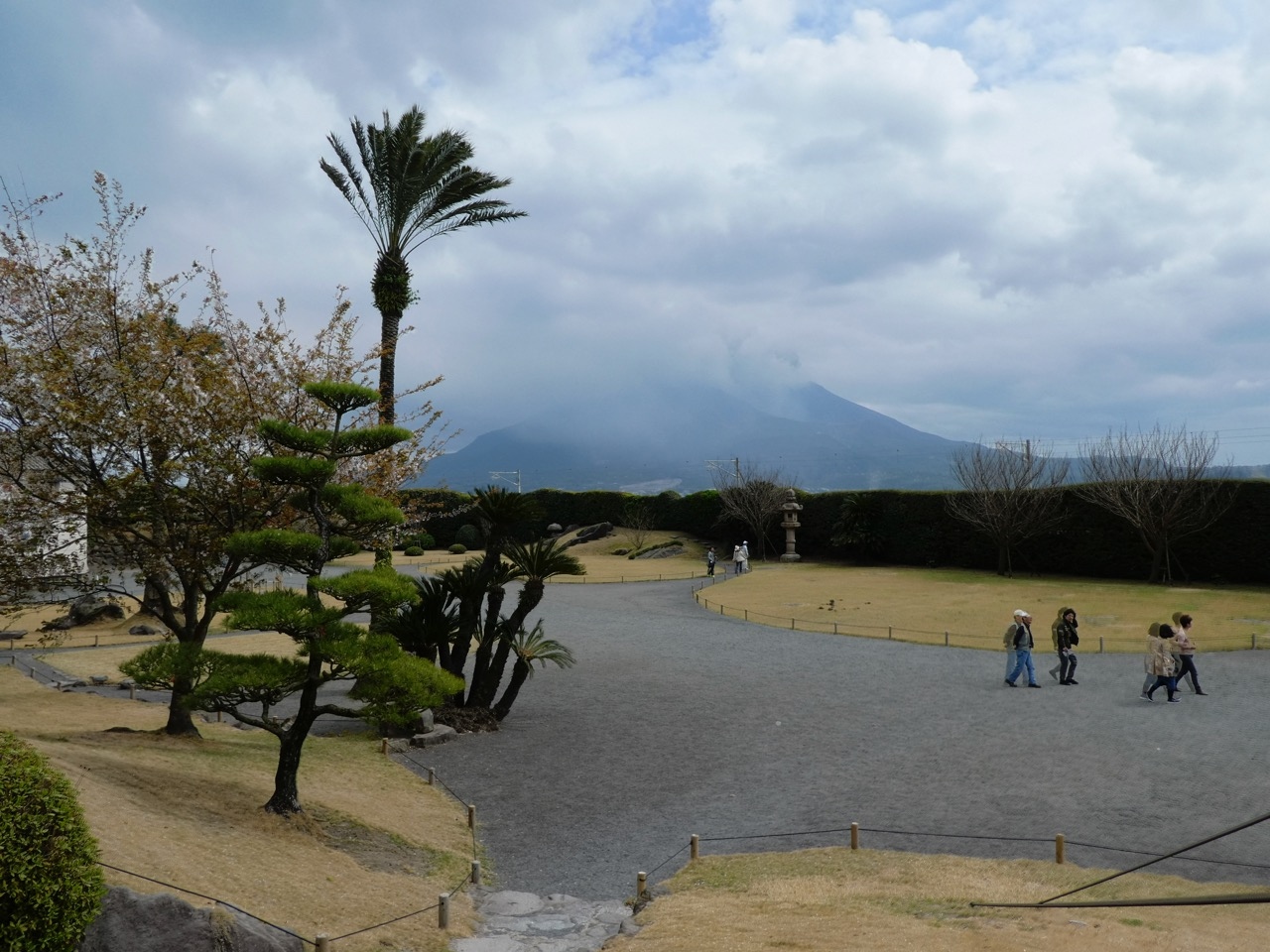 見所として桜島の景観があげられます。ただ煙を吐いていると南風のときはしっかりこちらに灰が飛んできます。