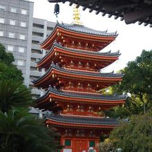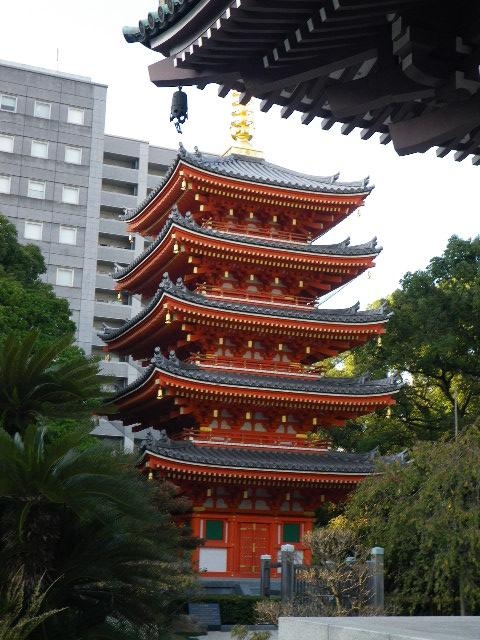 空海が日本で最初に作った最古のお寺。東長寺の見どころは鮮やかな朱色の五重塔、木造の座像では日本一の大きさを誇る福岡大仏有料施設、回転式の六角堂があります。桜の名所でライトアップ期間あり。博多駅から地下道を歩いて15分ほど。